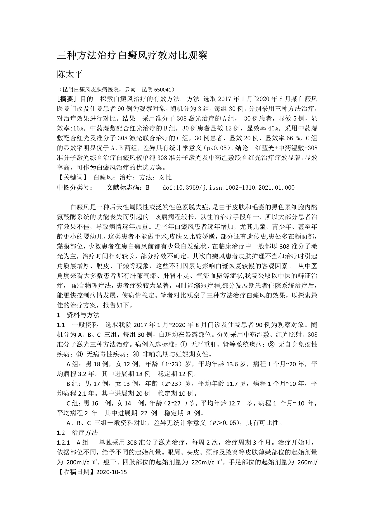 【中文期刊】陈太平《皮肤病与性病》 2021年43卷1期